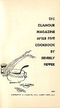 "The Glamour Magazine After Five Cookbook was originally planned as a chart to aid the working girl when she comes home tired and spent from her office only to face the insurmountable problem of preparing an original meal for her husband or companion... Today we simply cannot repeat this pattern and live. Either we are working at jobs outside of the home or we have other interests. The result for many is that the home, which is the primary goal for us all, suffers -as does our companionship with good food...This book provides 300 menus for weekdays, Sundays and holiday dinners and includes 1000 dishes menus taken from travels in Europe and America ... From the introduction.